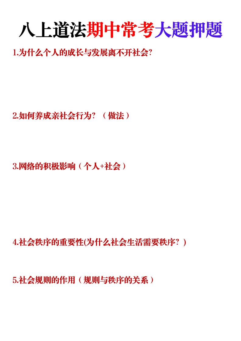2025秋八上道法早背晚默(空白)
