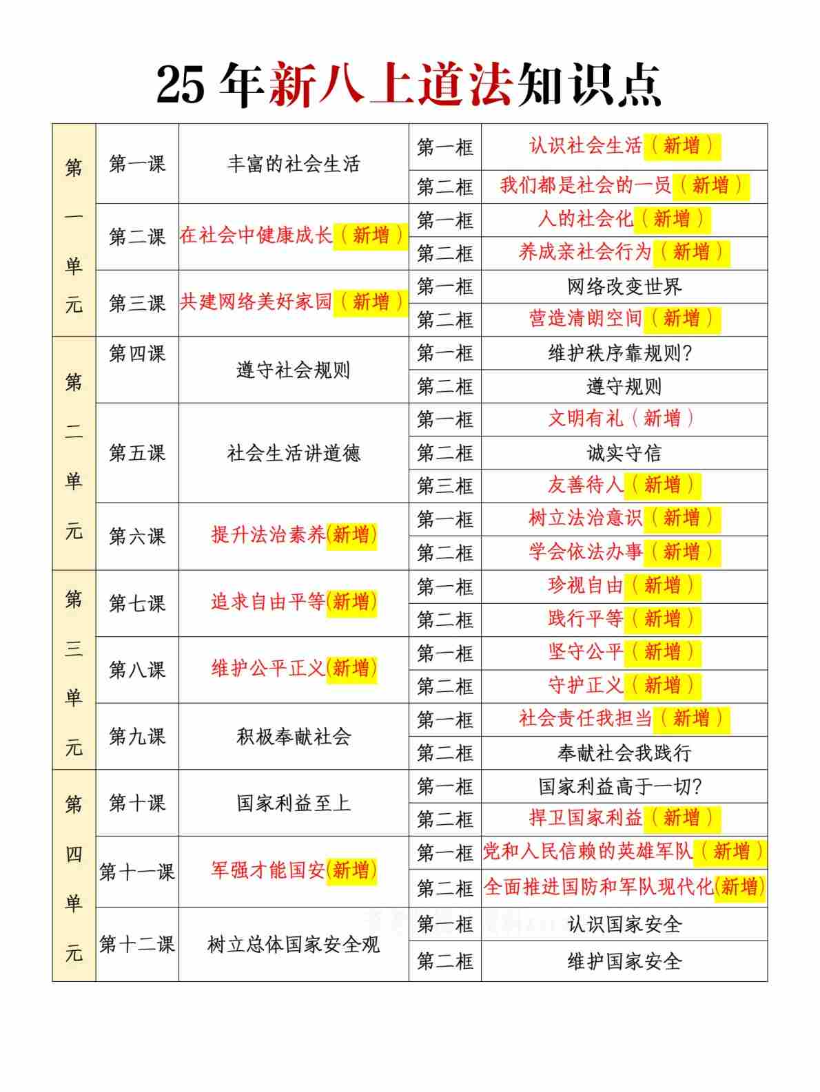 2025年新版八上道法知识点
