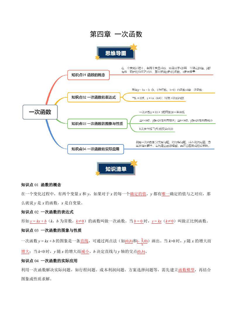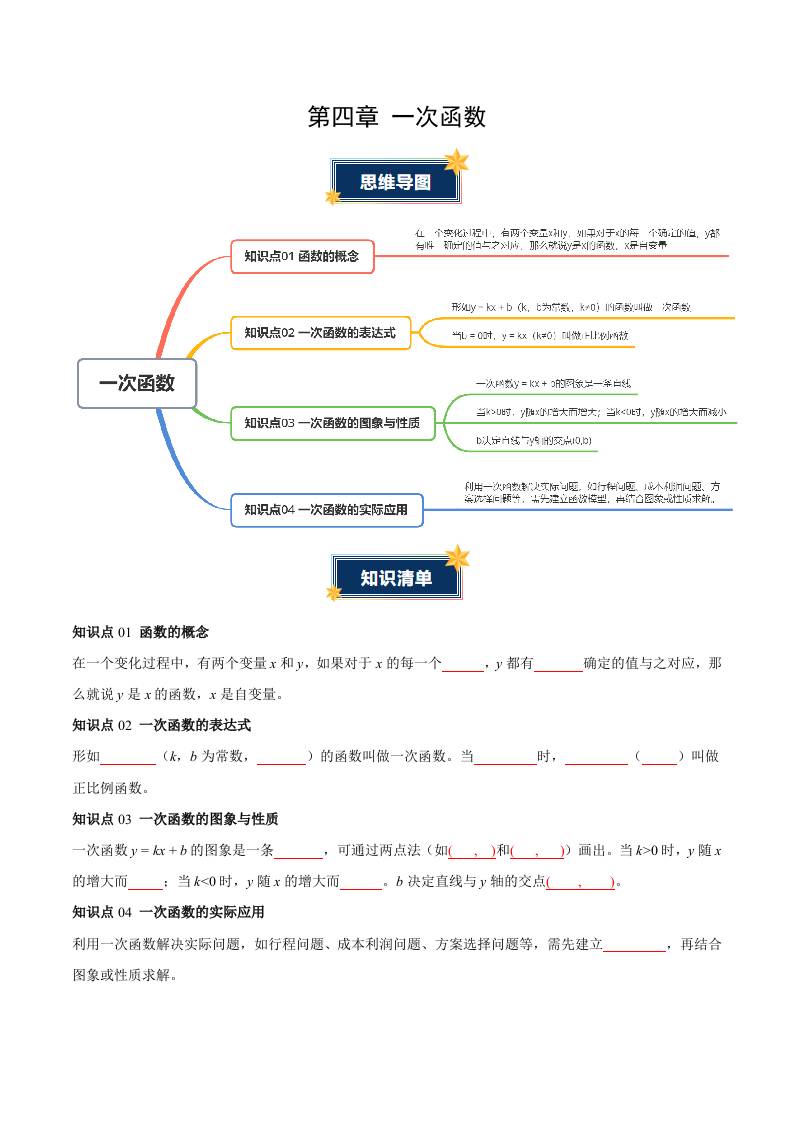 第四章 一次函数(知识清单)(学生版)