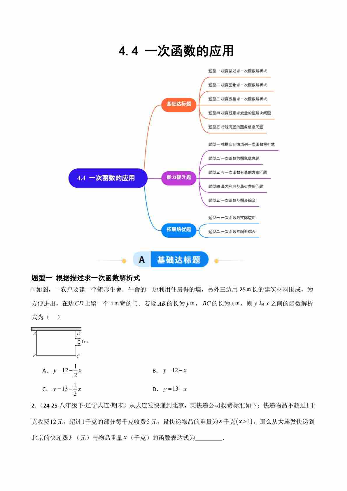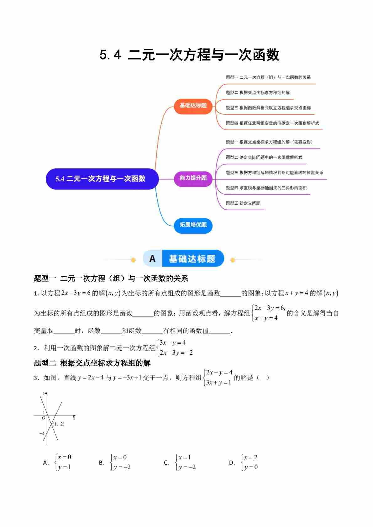 5.4 二元一次方程组与一次函数(题型专练)(原卷版)