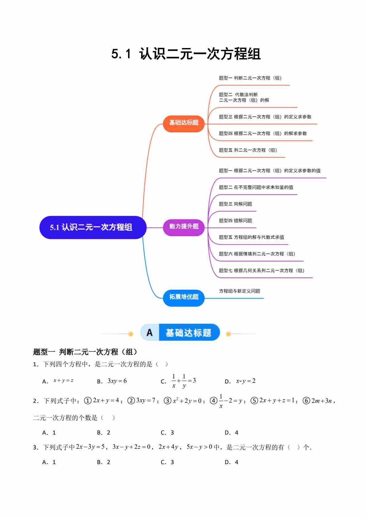 5.1 认识二元一次方程组(题型专练)(原卷版)
