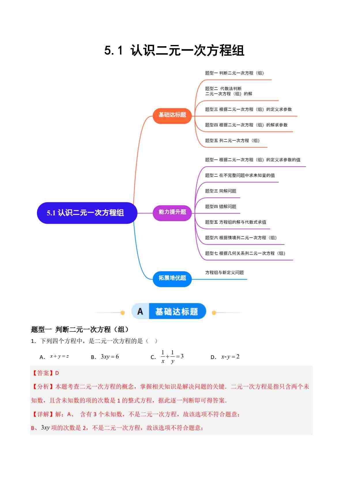 5.1 认识二元一次方程组(题型专练)(解析版)