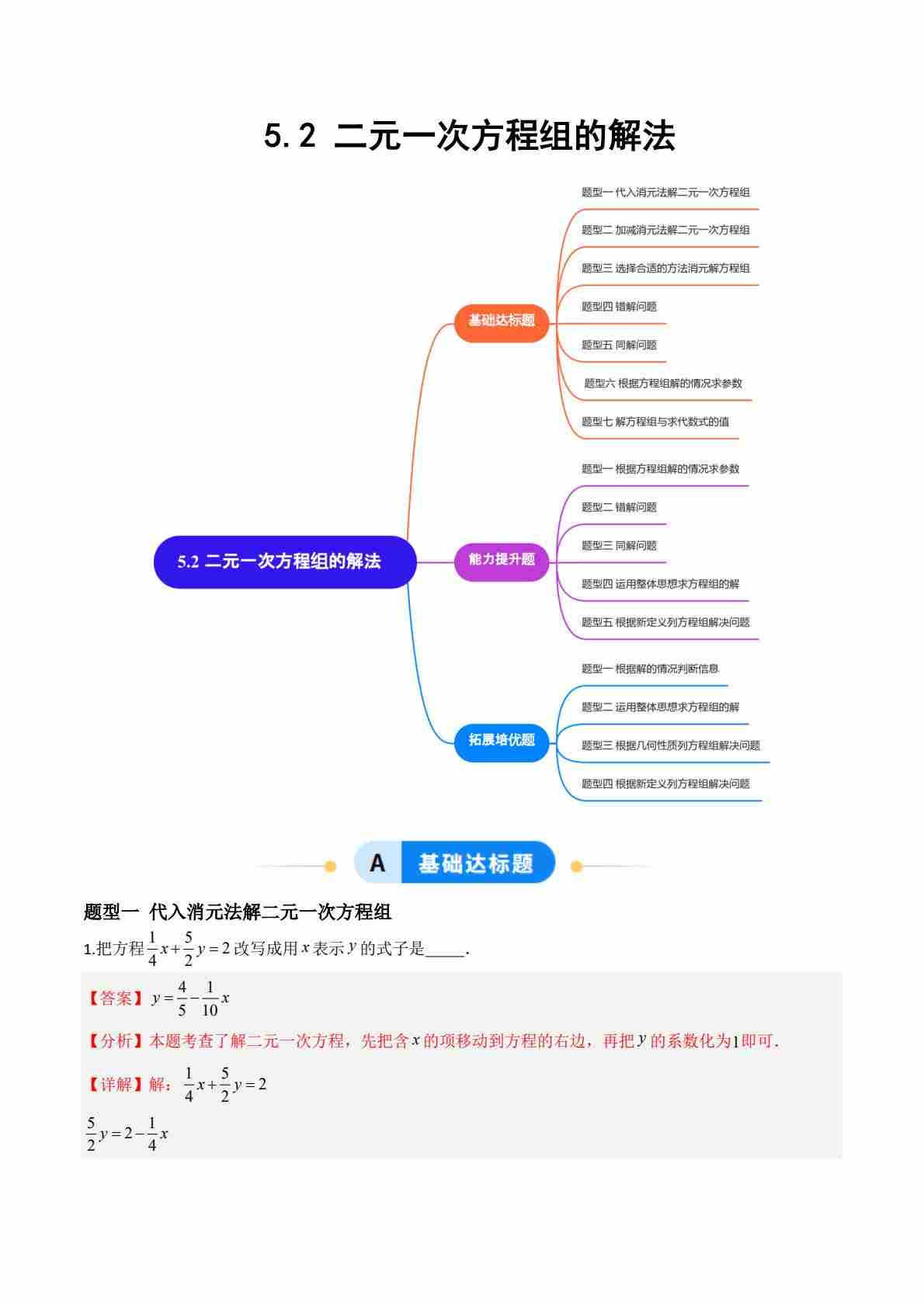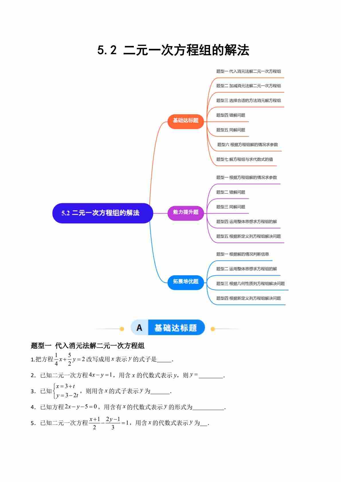 5.2 二元一次方程组的解法(题型专练)(原卷版)