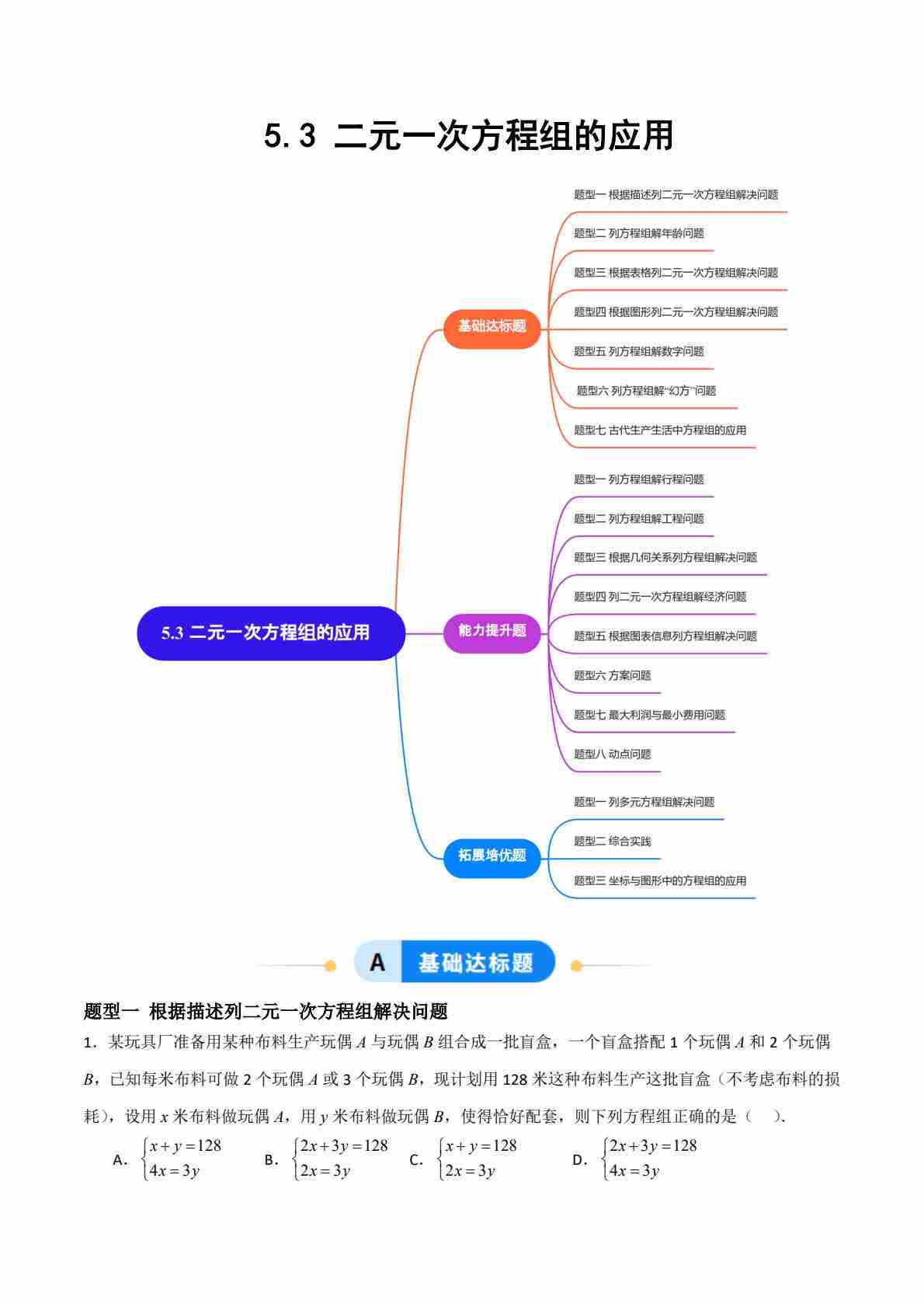 5.3 二元一次方程组的应用(题型专练)(原卷版)