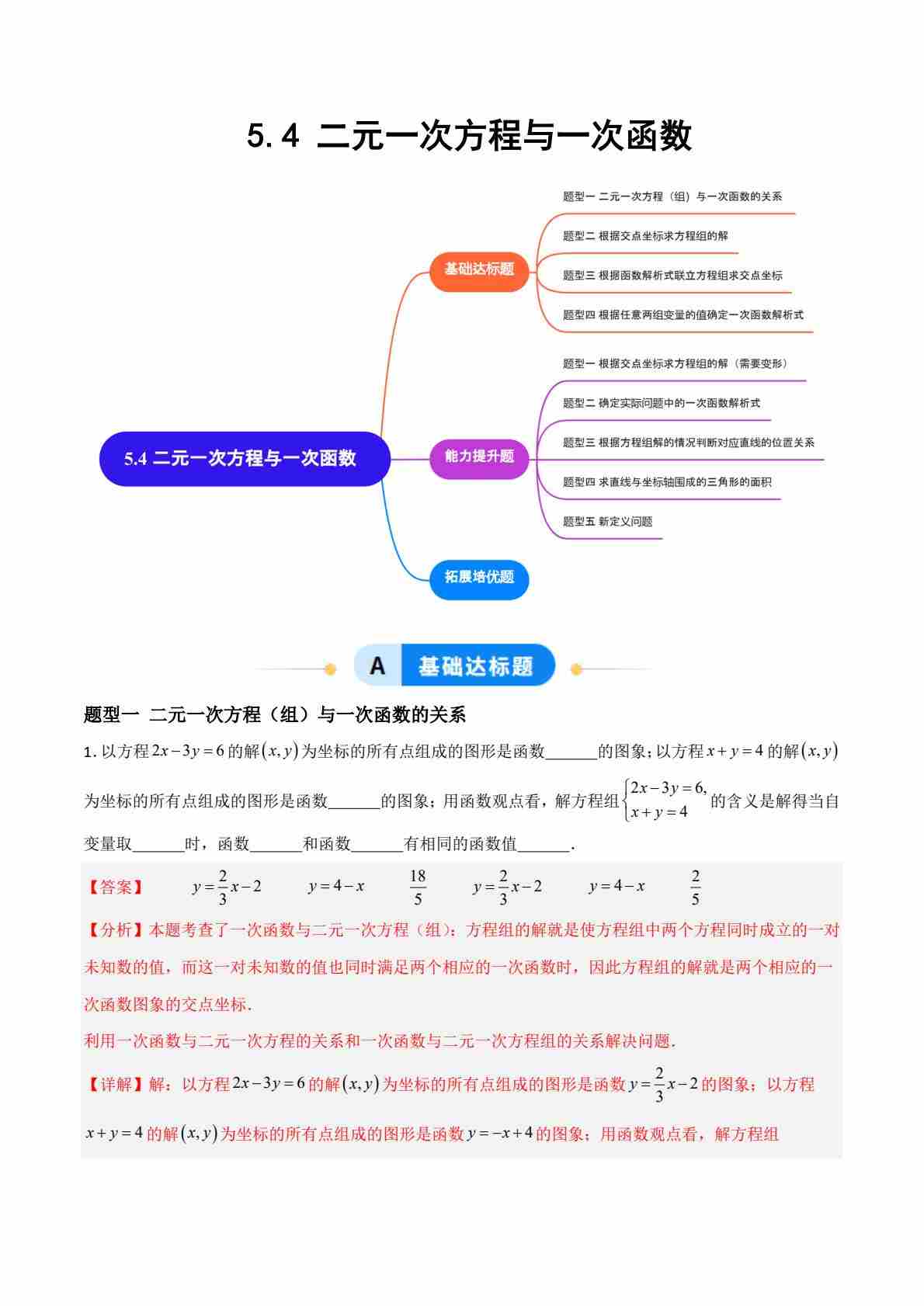 5.4 二元一次方程组与一次函数(题型专练)(解析版)