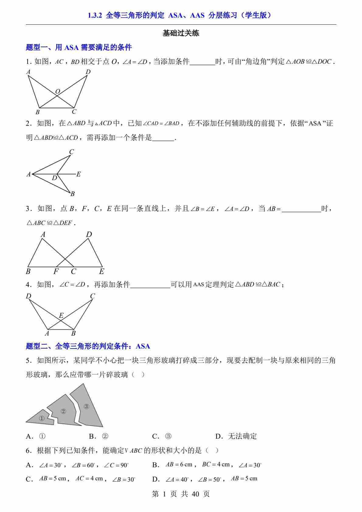 1.3.2 全等三角形的判定 ASA、AAS(分层练习)