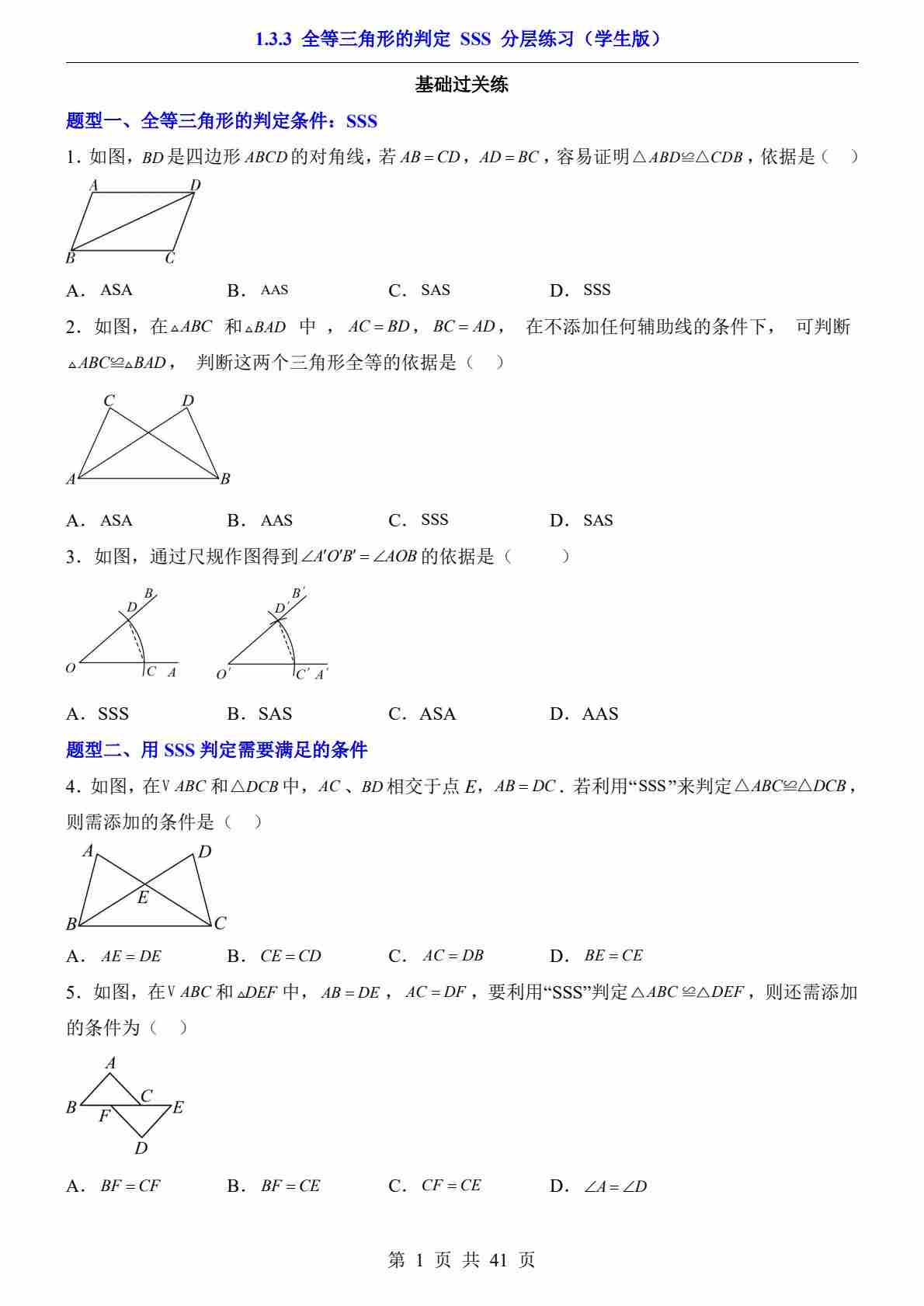 1.3.3 全等三角形的判定 SSS(分层练习)