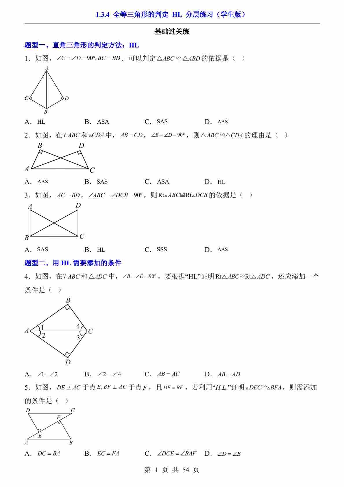 1.3.4 全等三角形的判定 HL(分层练习)