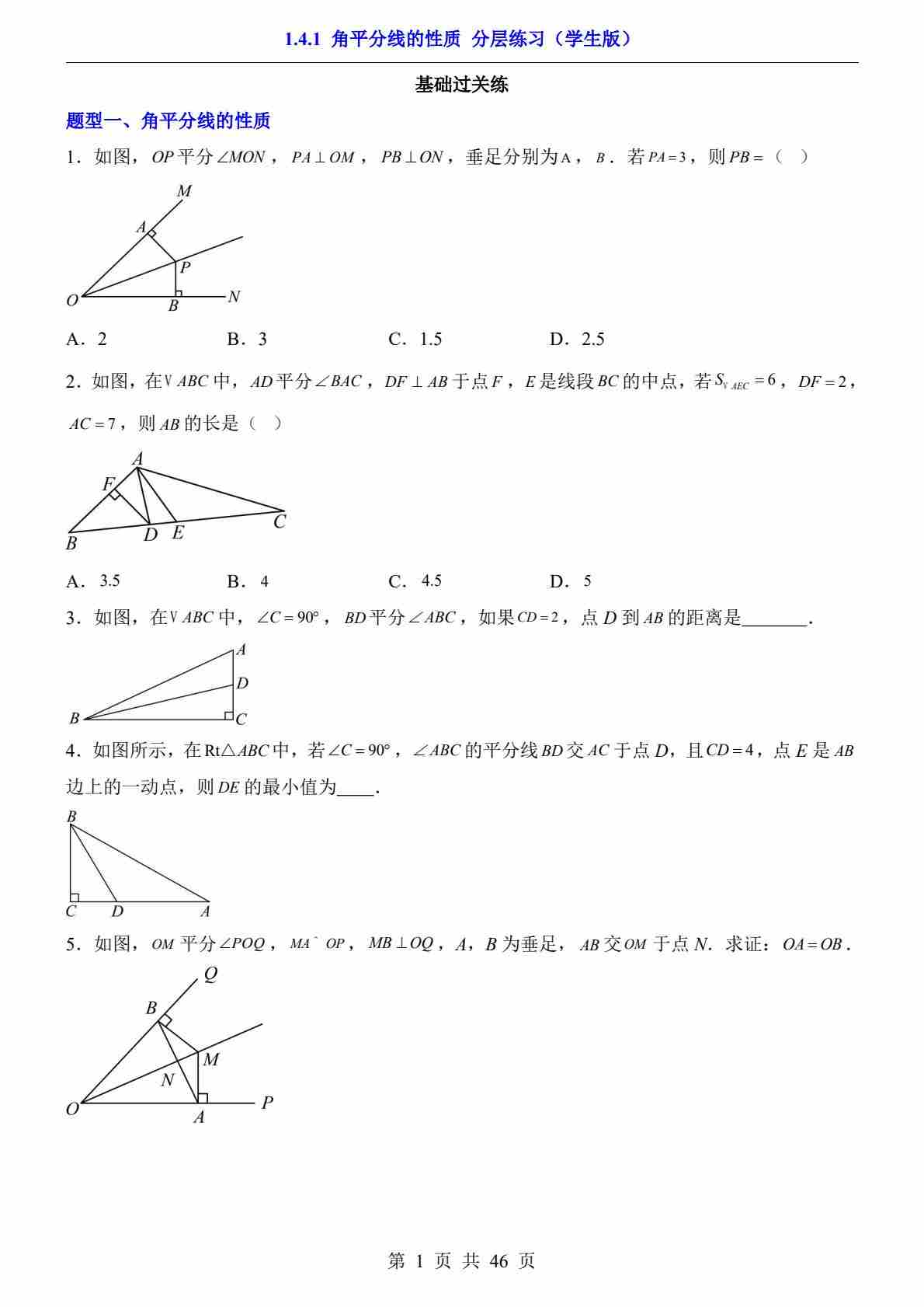 1.4.1 角平分线的性质(分层练习)