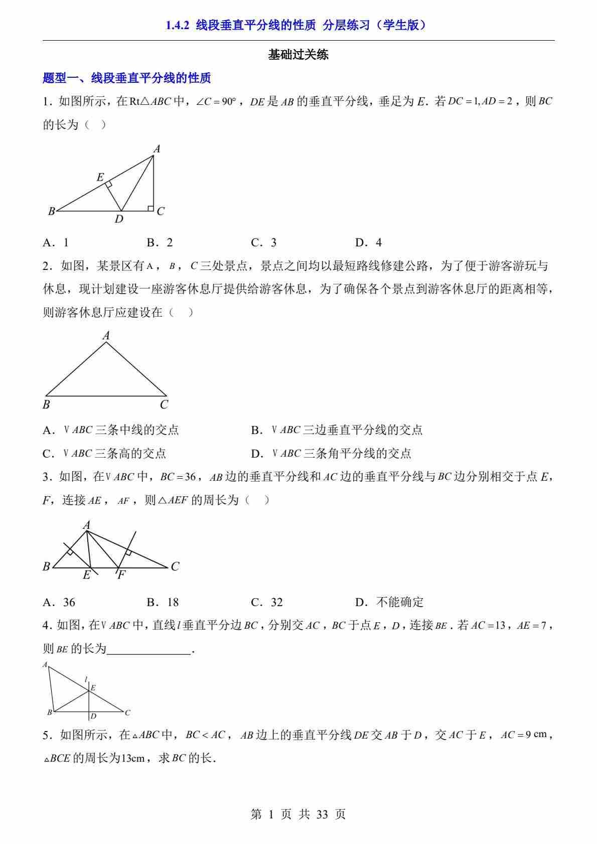 1.4.2 线段垂直平分线的性质(分层练习)