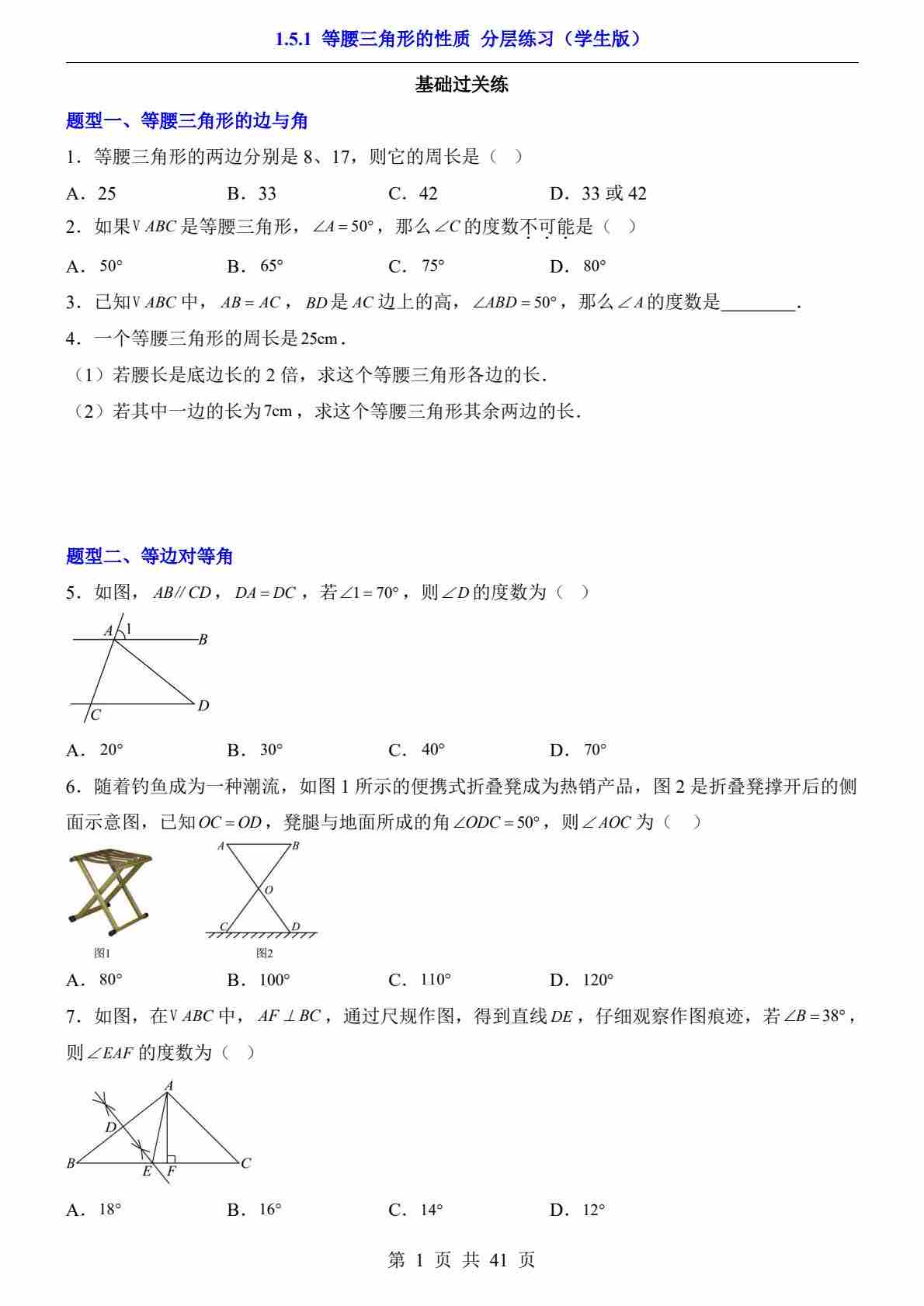 1.5.1 等腰三角形的性质(分层练习)