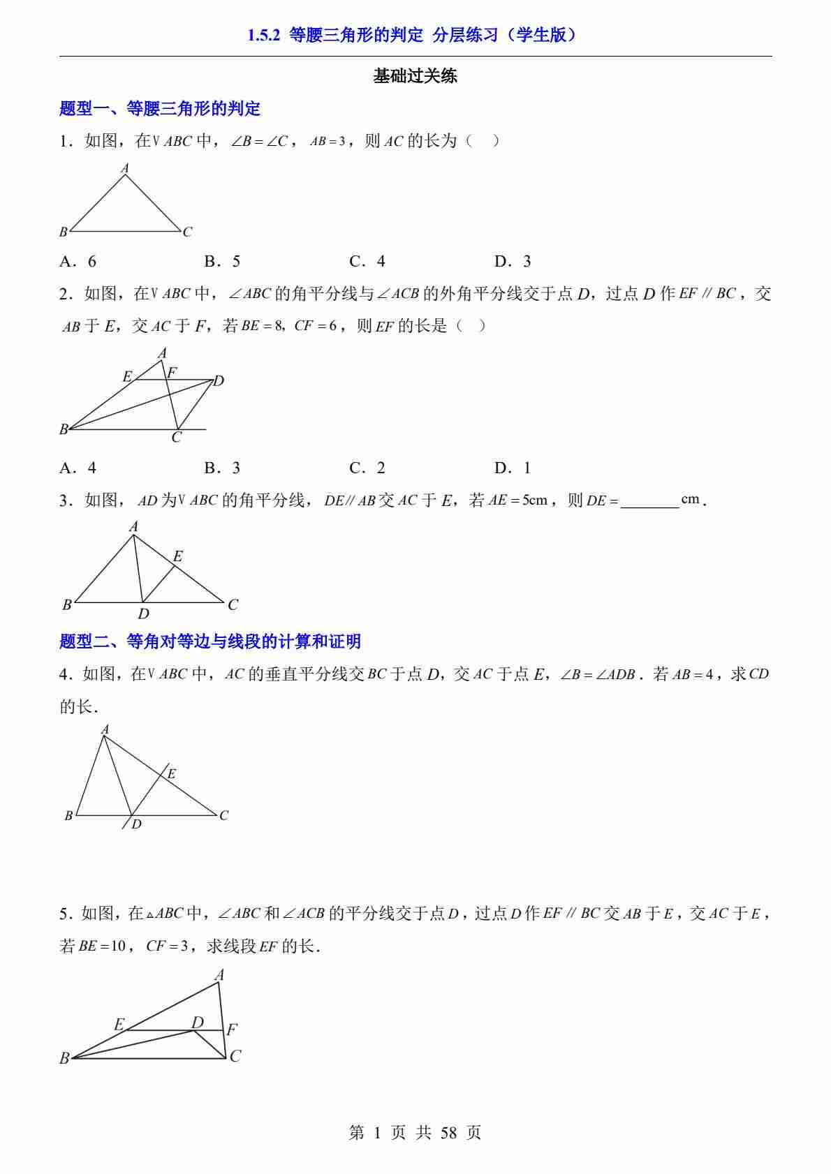 1.5.2 等腰三角形的判定(分层练习)