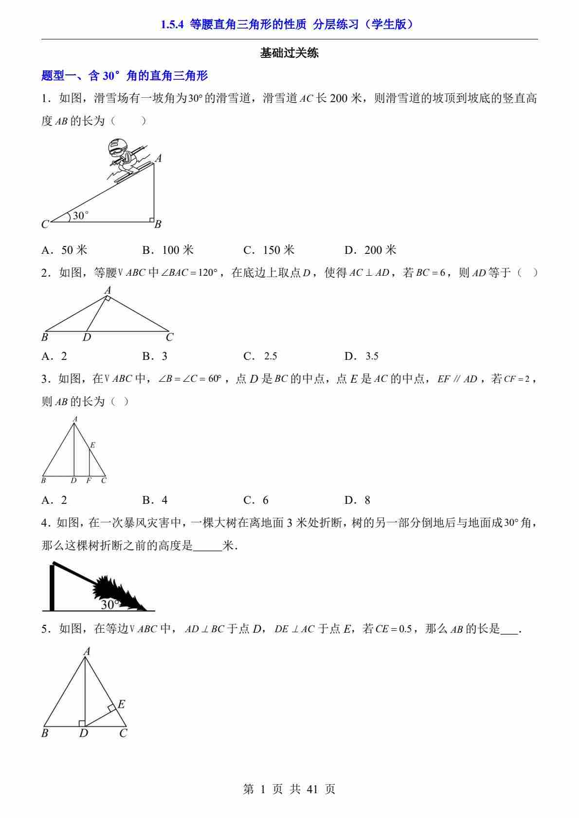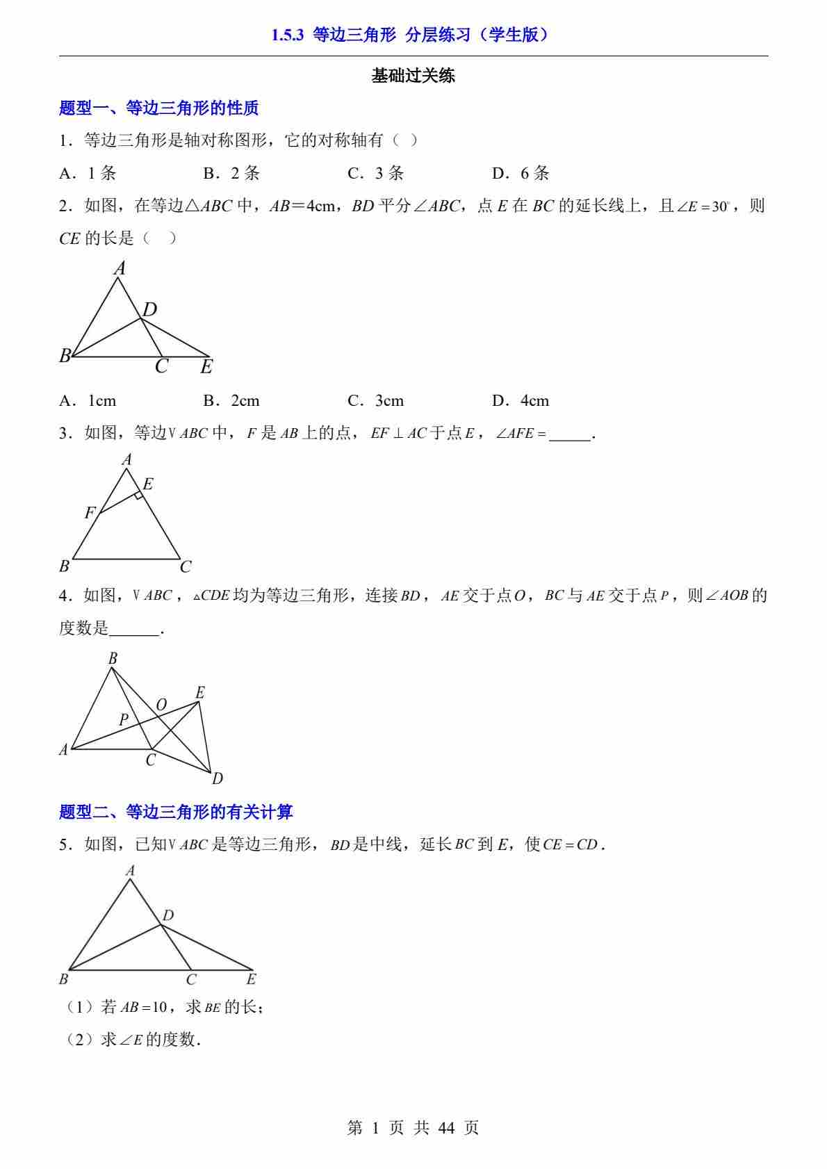 1.5.3 等边三角形(分层练习)