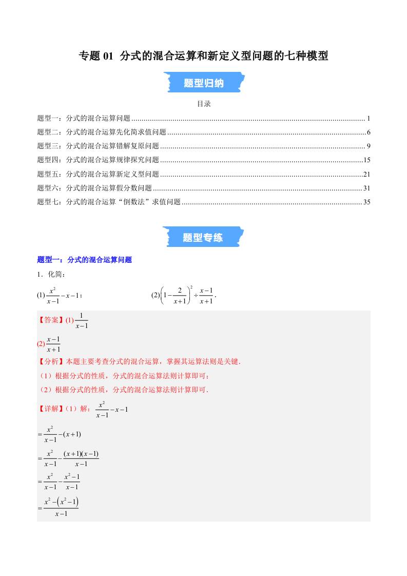 专题01 分式的混合运算和新定义型问题的七种模型(高效培优专项训练)(教师版)