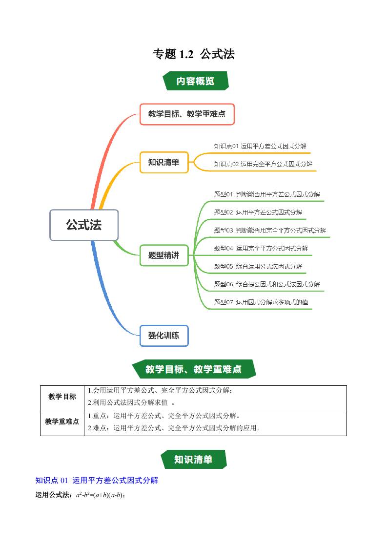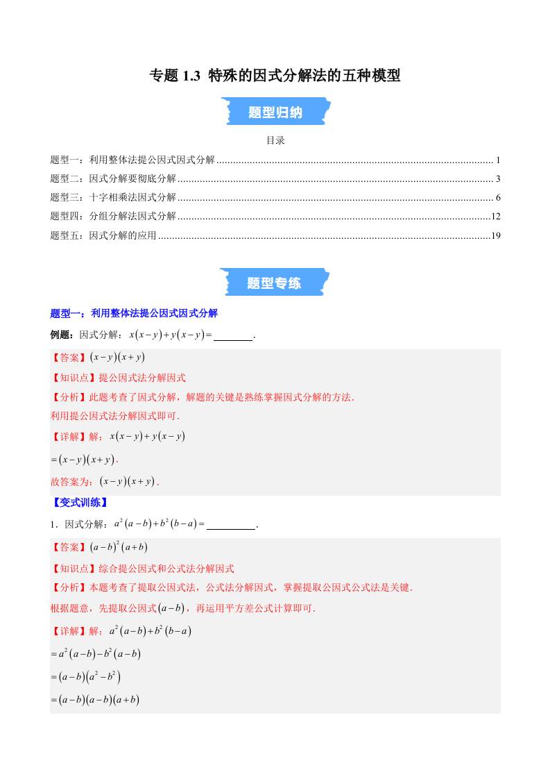 专题1.3 特殊的因式分解法的五种模型(高效培优专项训练)(教师版)