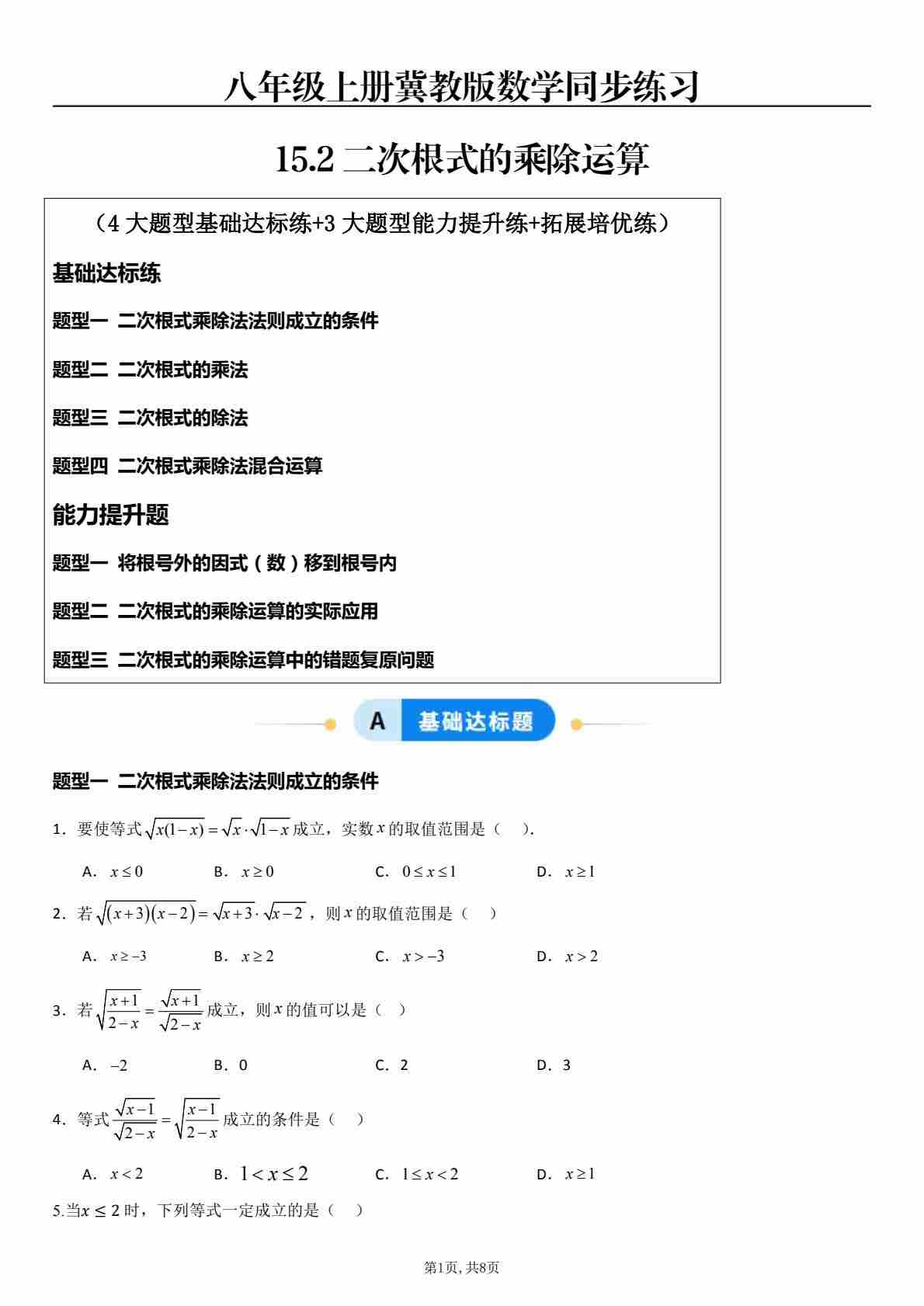 15.2二次根式的乘除运算(题型专练)(原卷版)