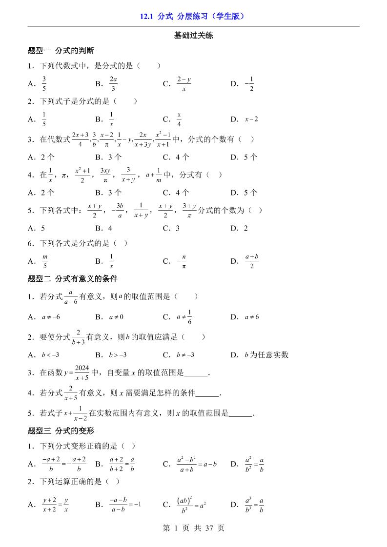 12.1 分式(分层练习)