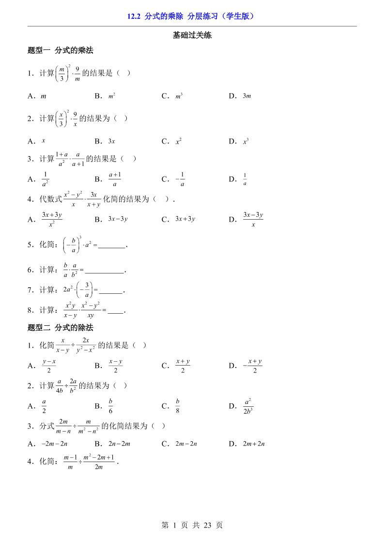 12.2 分式的乘除(分层练习)