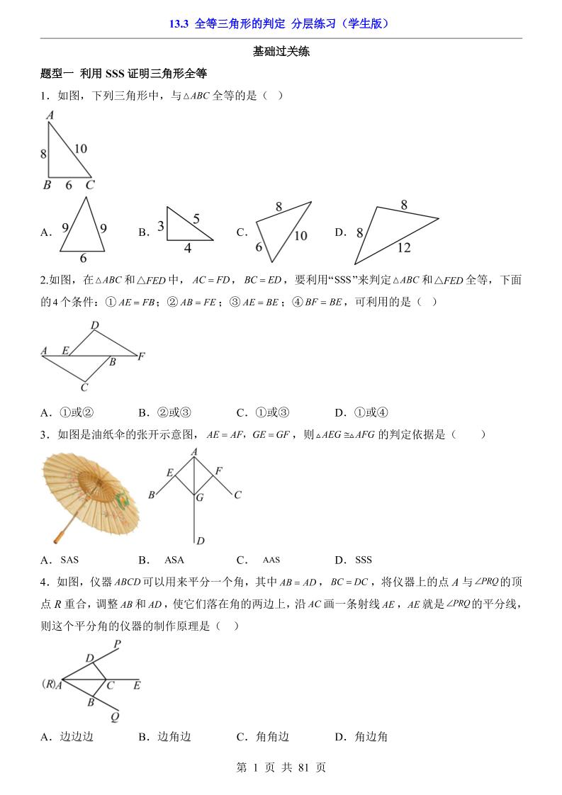 13.3 全等三角形的判定(分层练习)