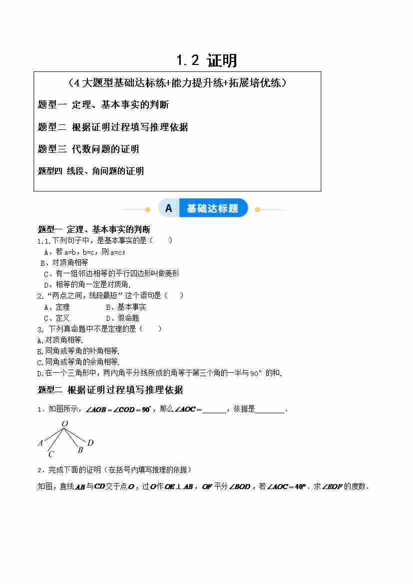 1.2证明(题型专练)(原卷版)青岛版