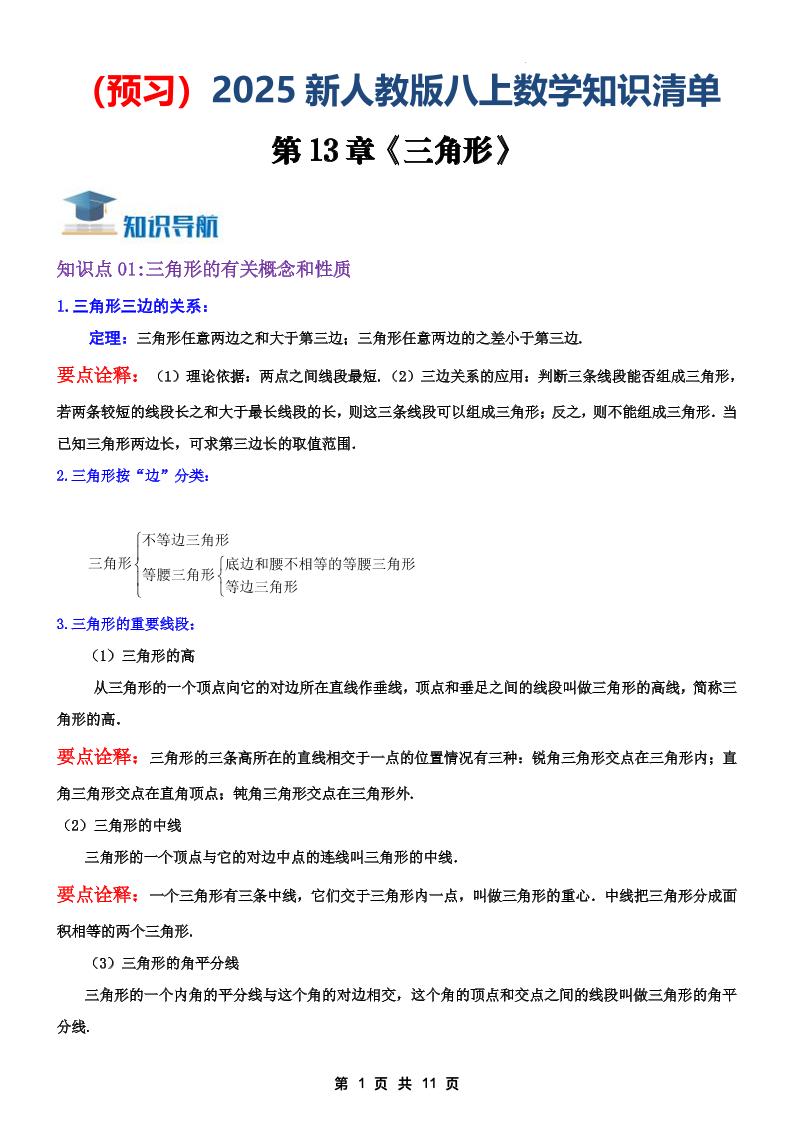 八上数学专题13.1 三角形的概念、三角形的边(举一反三讲义)数学人教版2024八年级上册(解析版)