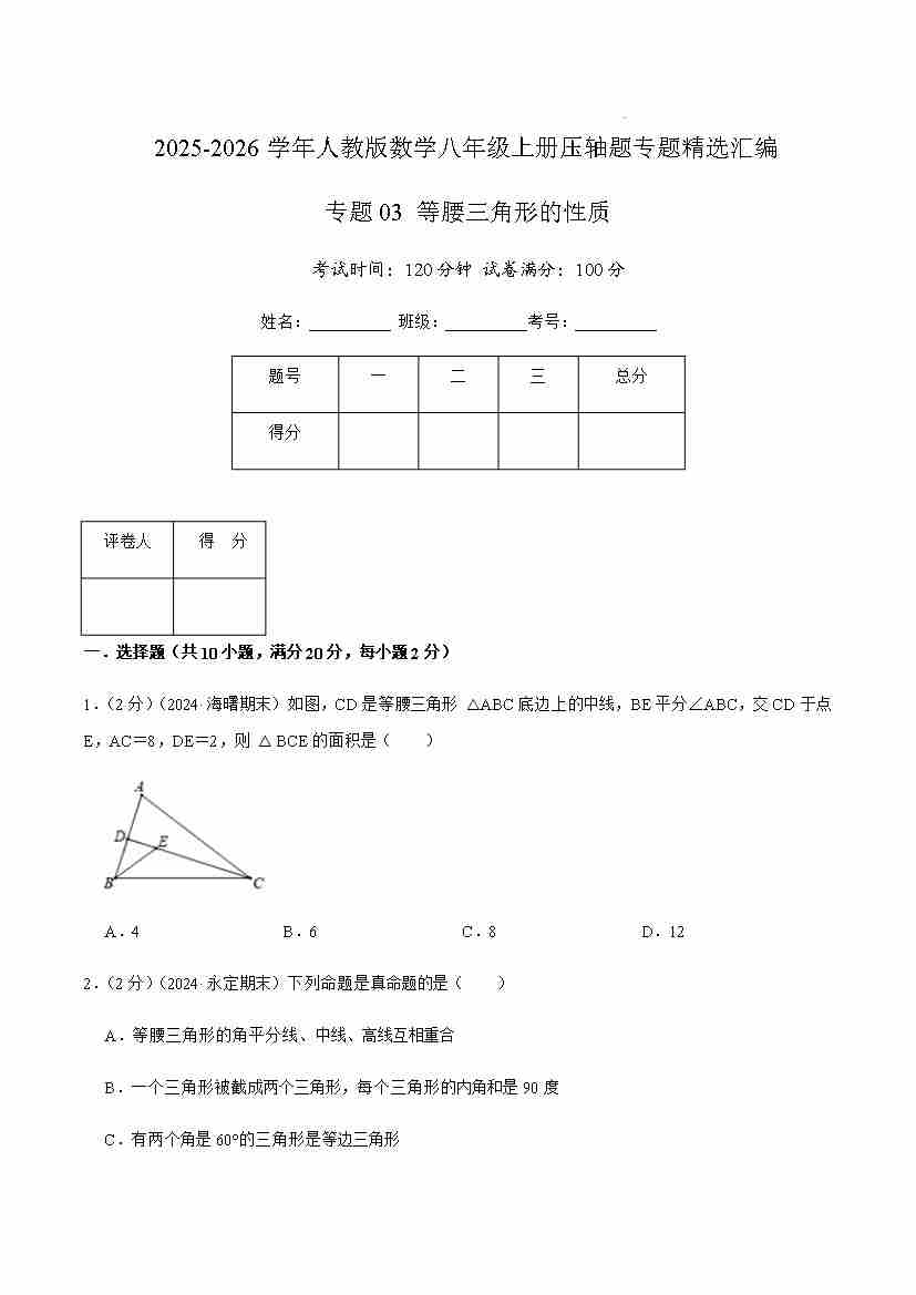 专题03 等腰三角形的性质(原卷版)