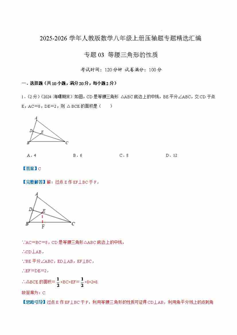 专题03 等腰三角形的性质(解析版)