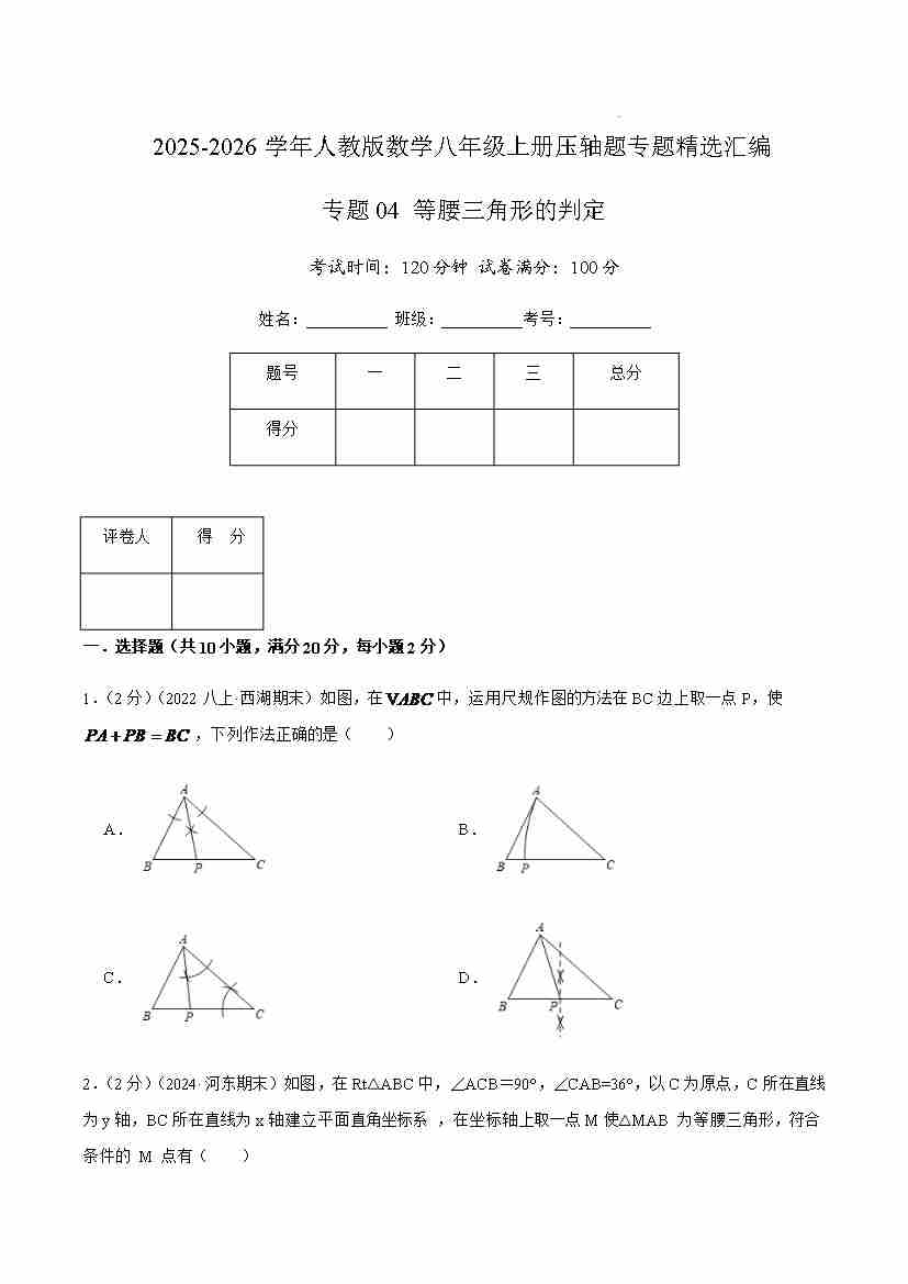 专题04 等腰三角形的判定(原卷版)