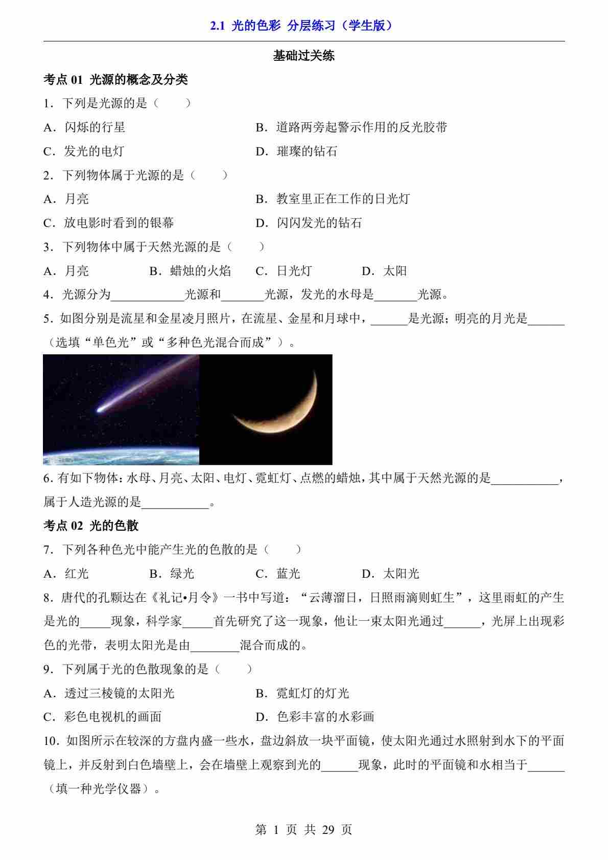 3.6 跨学科实践 自制天文望远镜观察月球(分层练习)