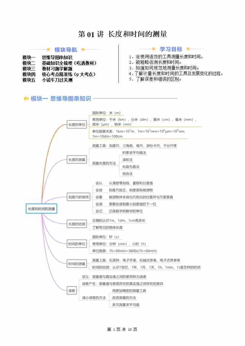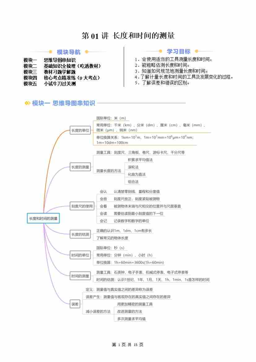 第01讲 长度和时间的测量(原卷版)