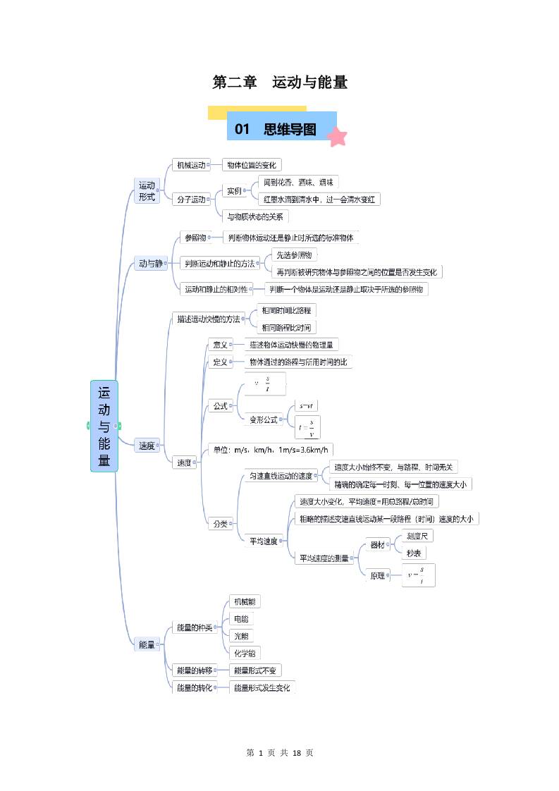 第2章: 运动与能量(教科版)【速记清单】(原卷版)