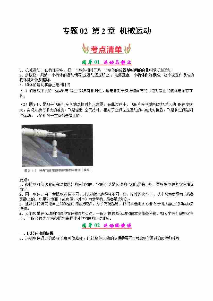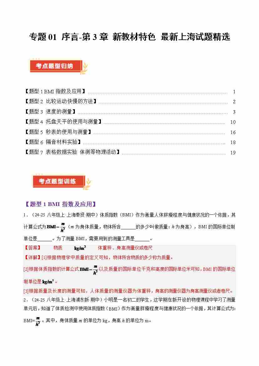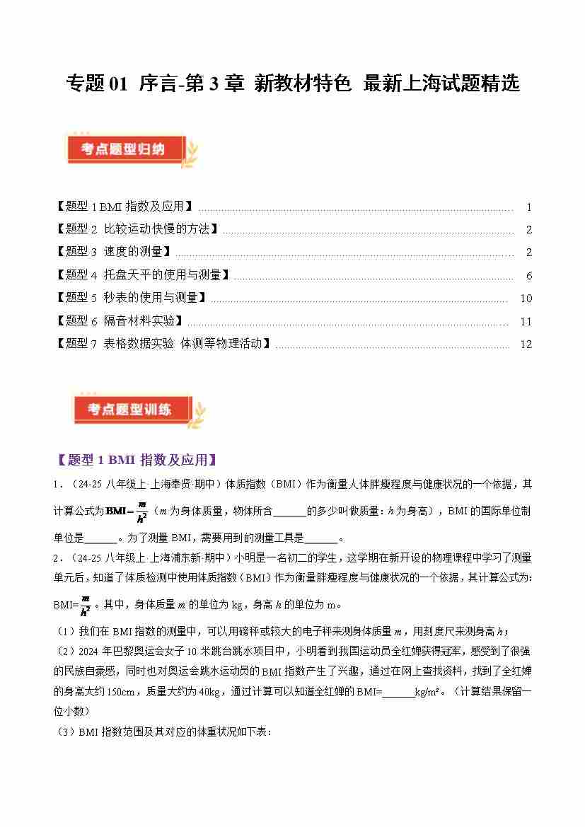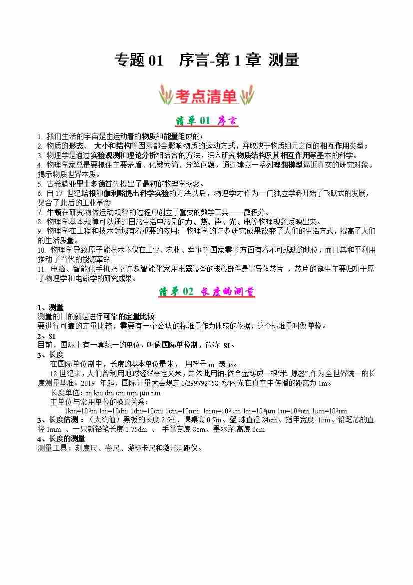专题01 序言-第1章 测量(考点清单)(学生版)