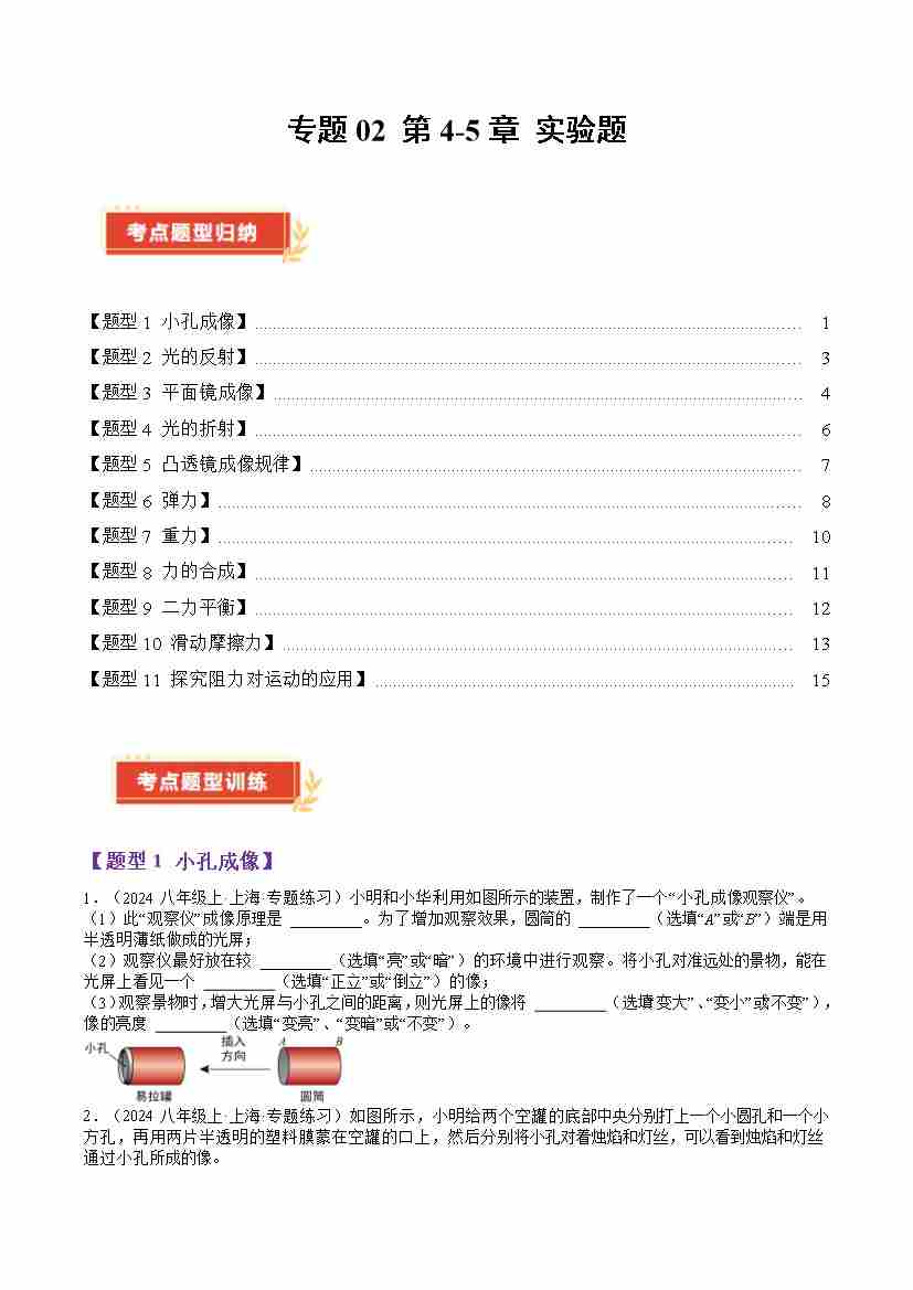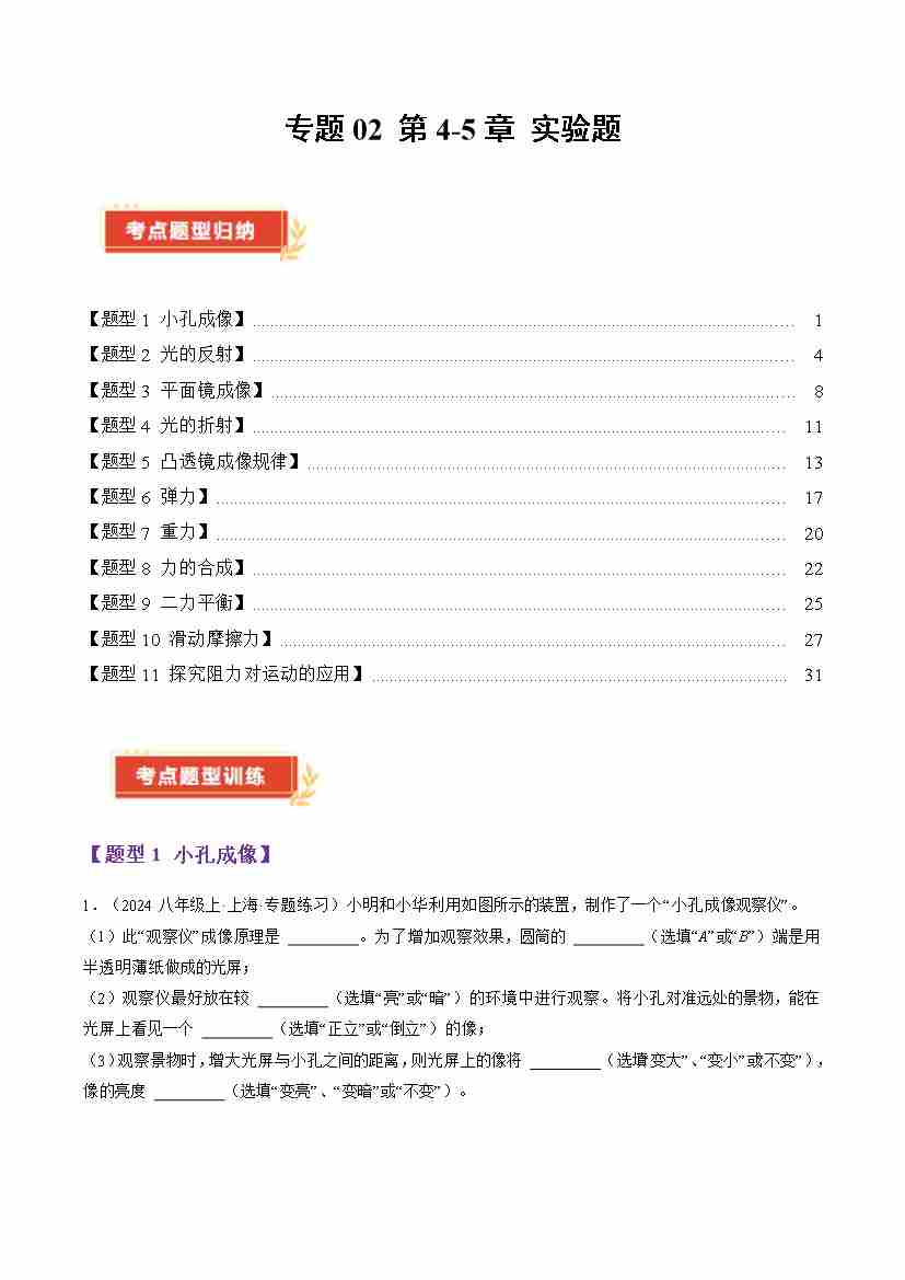 专题02 第4-5章 实验题(考题猜想)(36题十一大题型)(学生版)