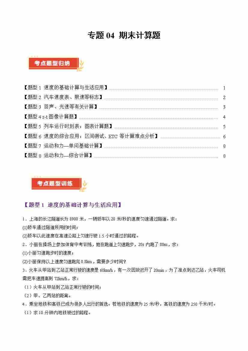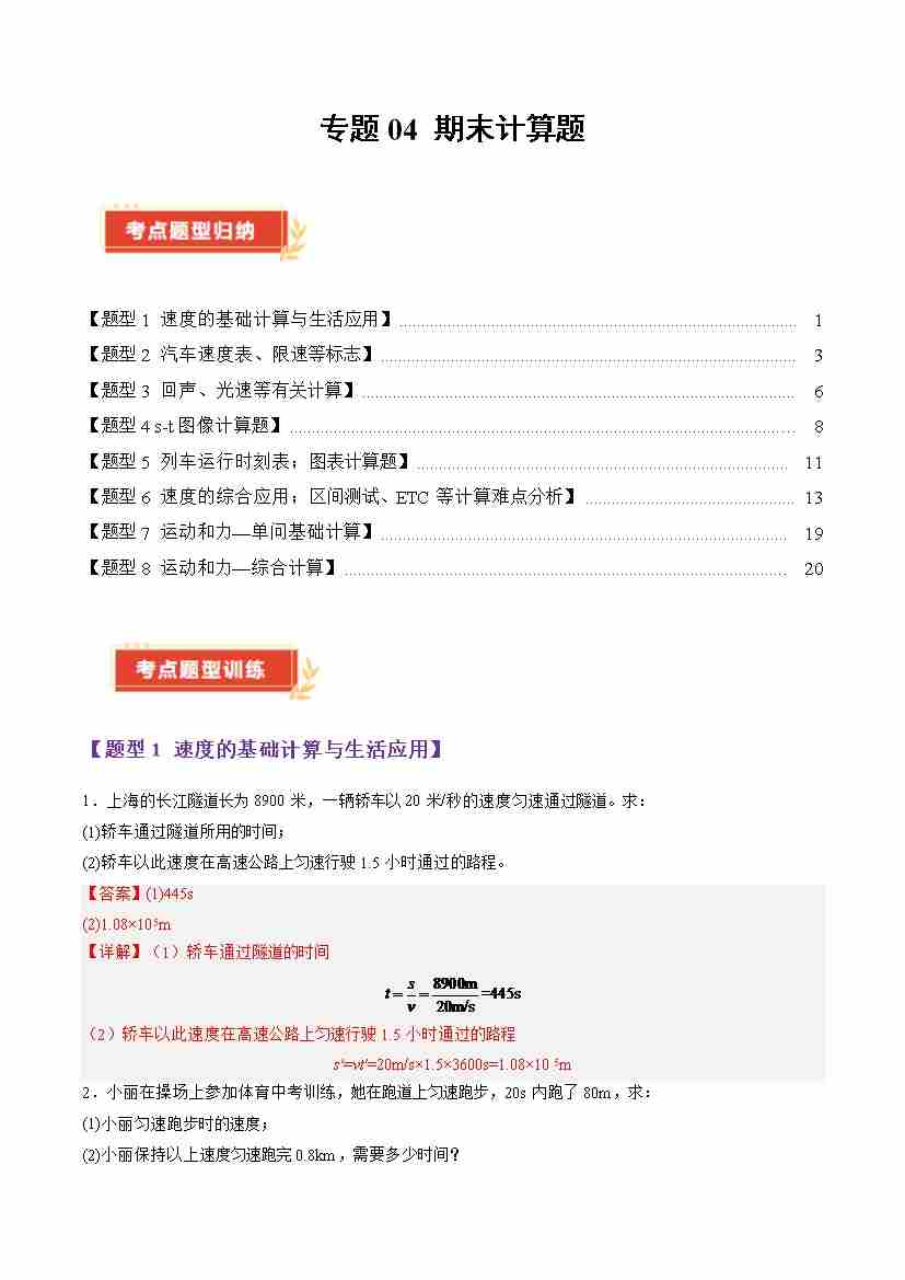 专题04 期末计算题(考题猜想)(38题八大题型)(教师版)