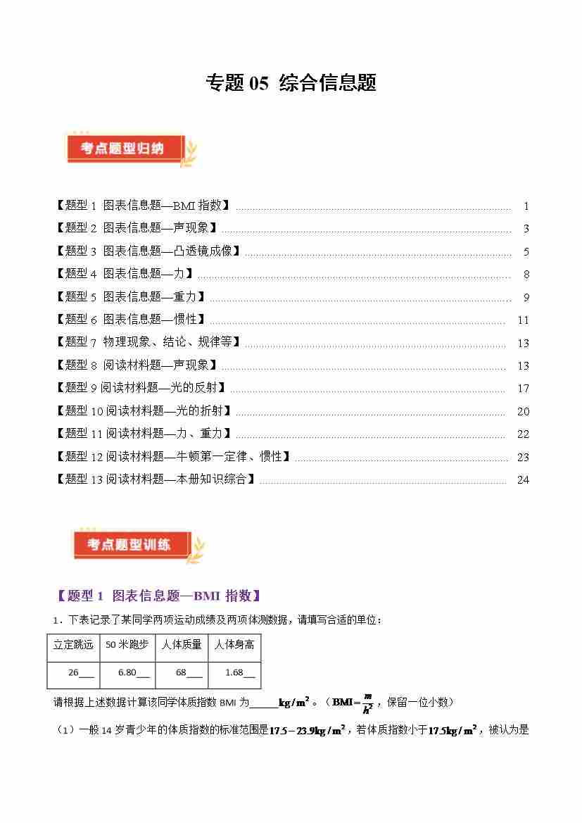 专题05 综合信息题(考题猜想)(33题十三大题型)(教师版)