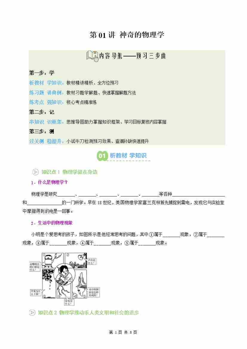 第01讲:神奇的物理学(预习)(原卷版)