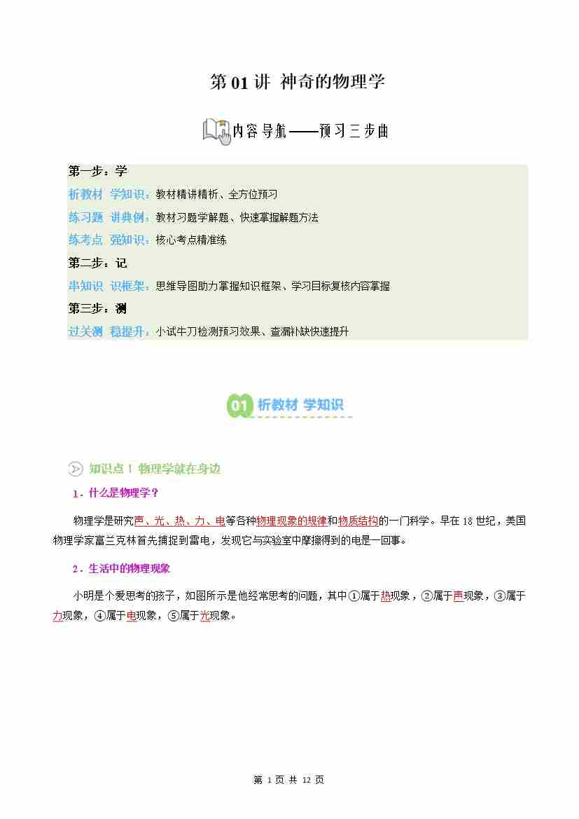 第01讲:神奇的物理学(预习)(解析版)