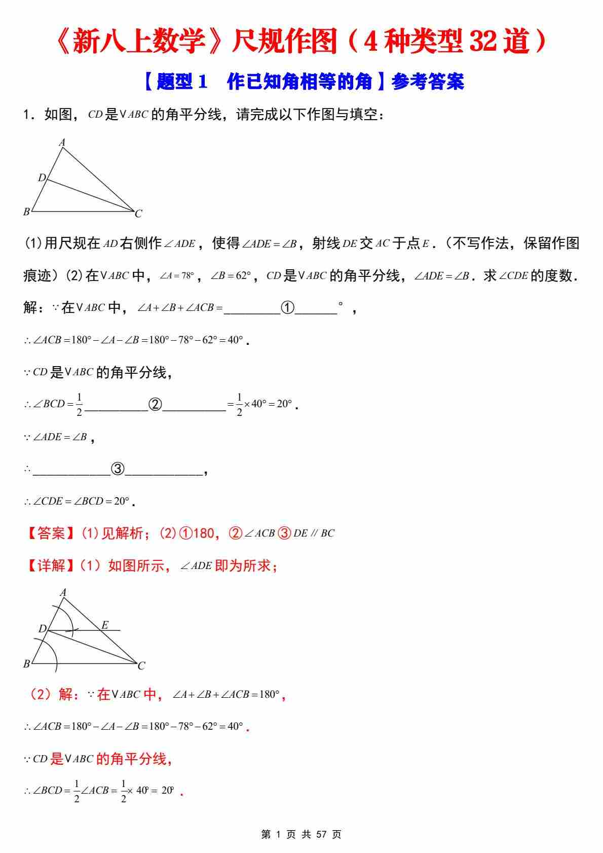 八年级上册数学几何模型每日一练小纸条【答案】