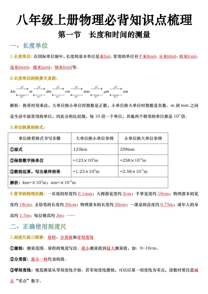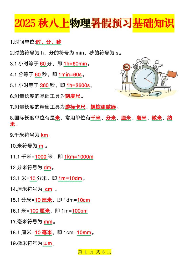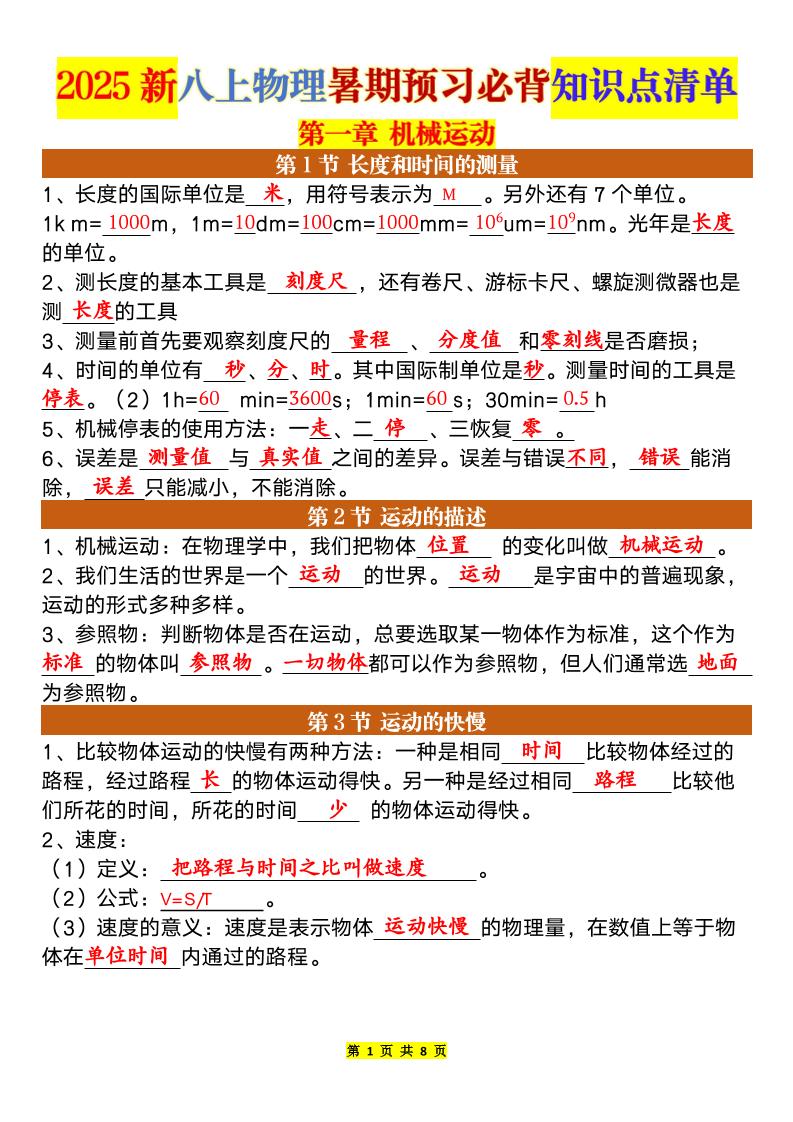 1_2025秋八上物理暑假预习基础知识