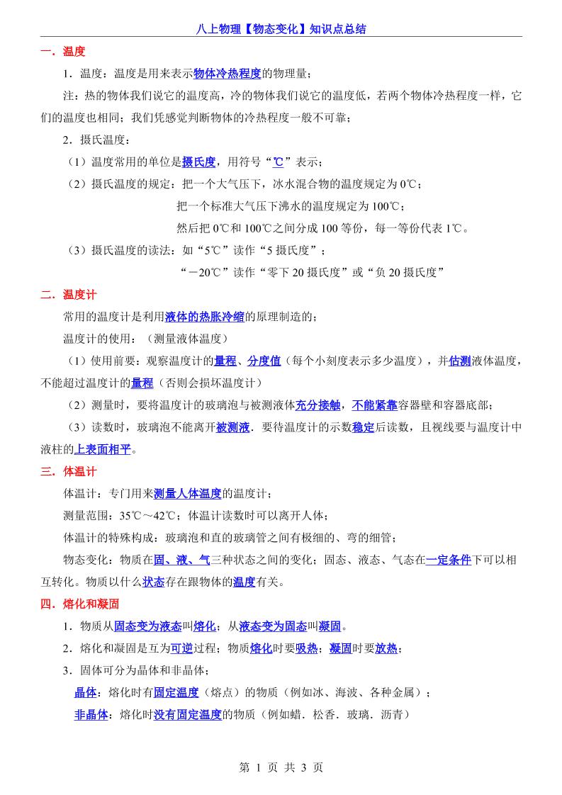 八上物理【物态变化】知识点总结