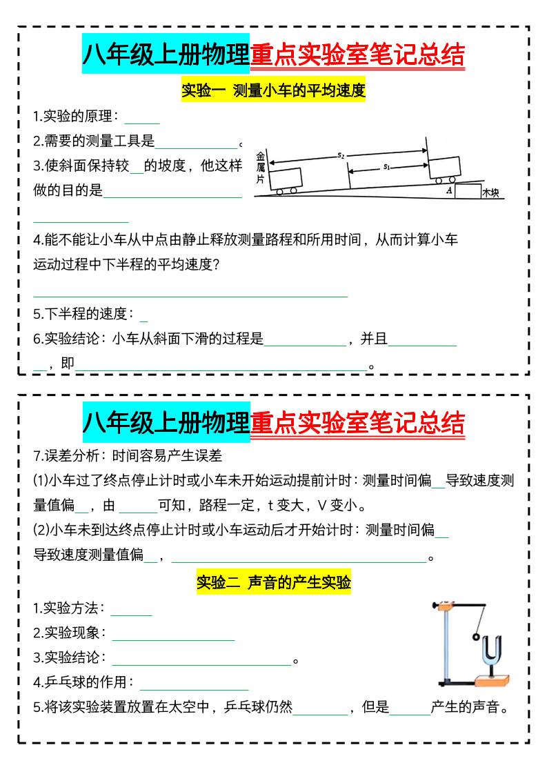 八年级上册物理重点实验室笔记总结小纸条