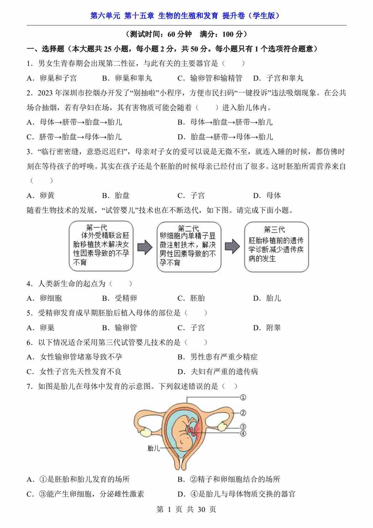 第6单元 第15章 生物的生殖和发育(提升卷)