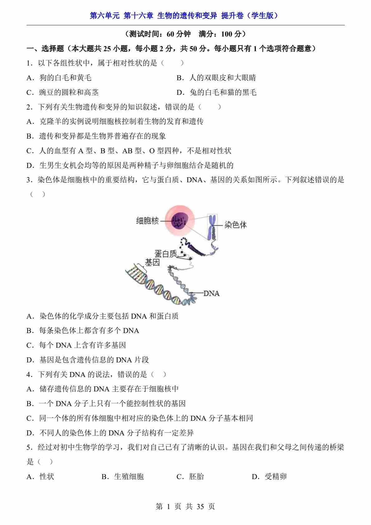 第6单元 第16章 生物的遗传和变异(提升卷)