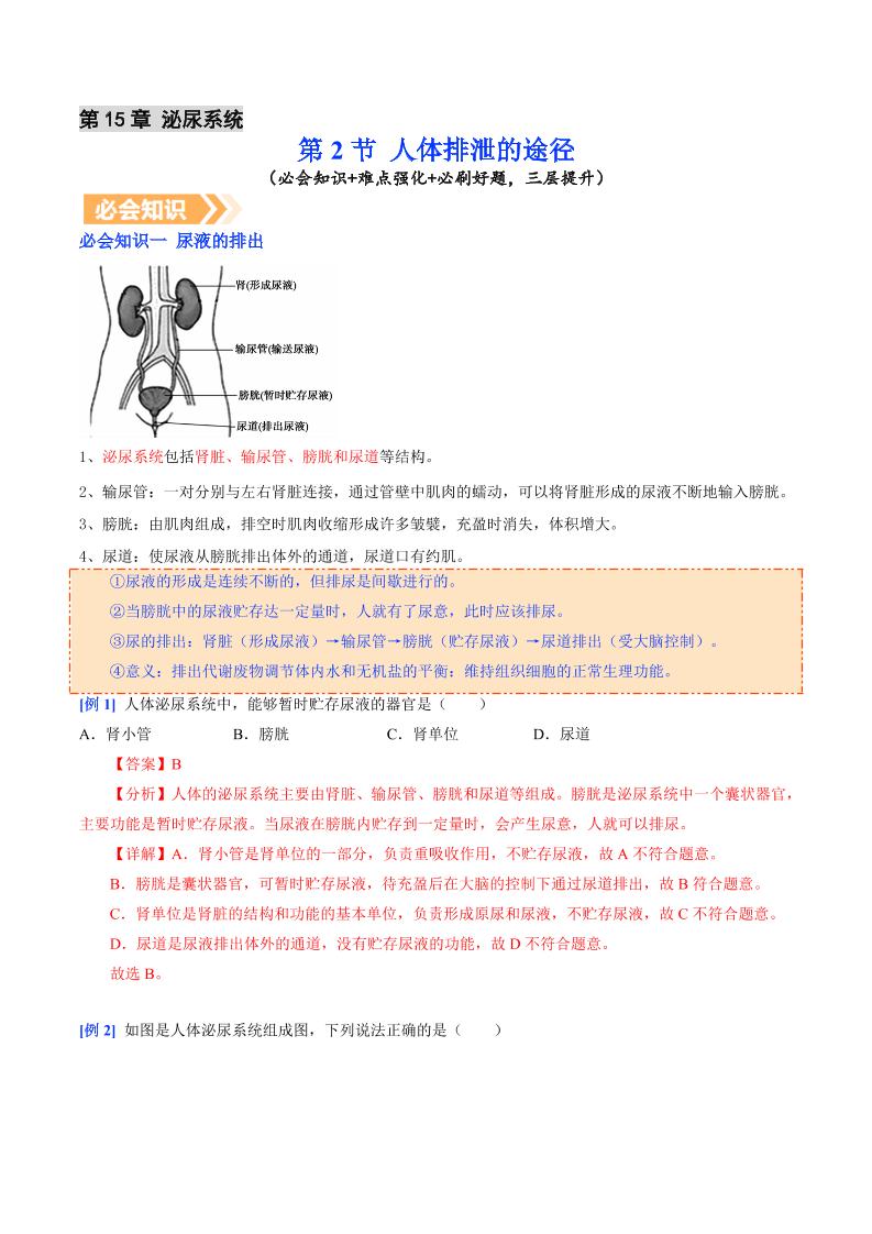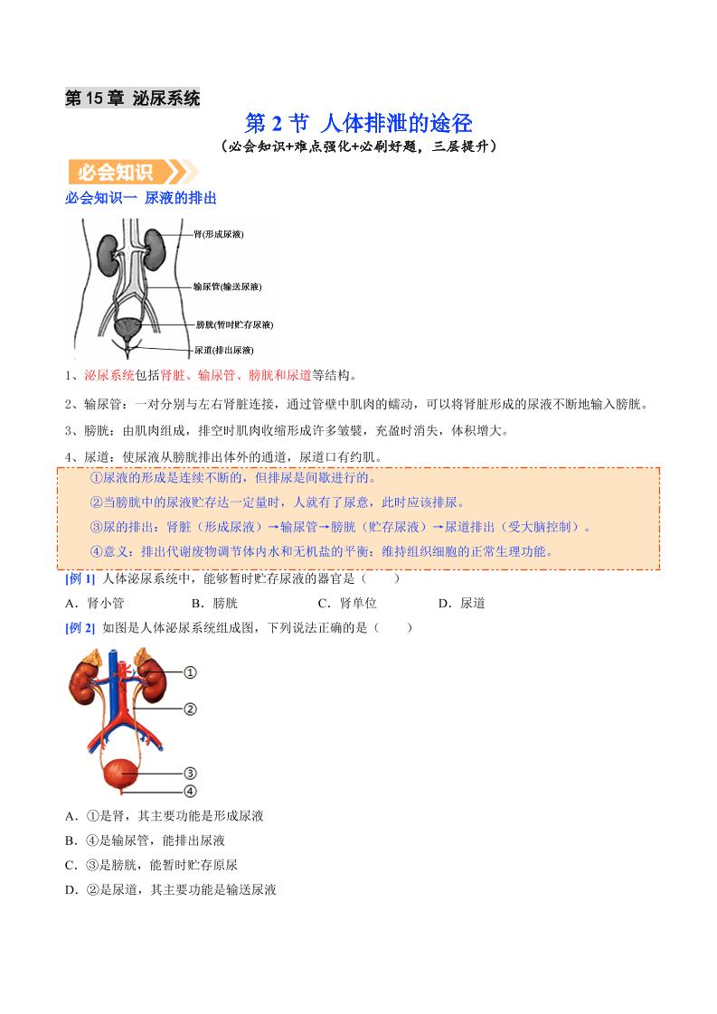 5.15.2 人体排泄途径(提升讲义)生物苏教版2024八年级上册(原卷版)