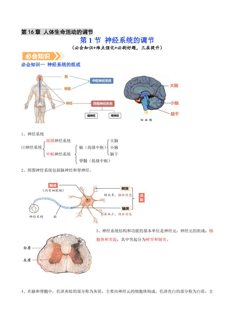 5.16.1 神经系统的调节(提升讲义)生物苏教版2024八年级上册(解析版)