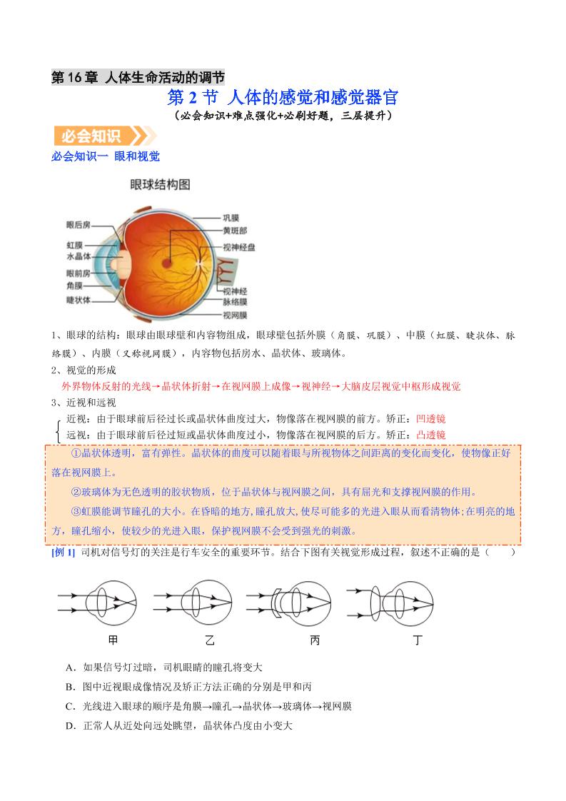 5.16.2 人体的感觉和感觉器官(提升讲义)(解析版)