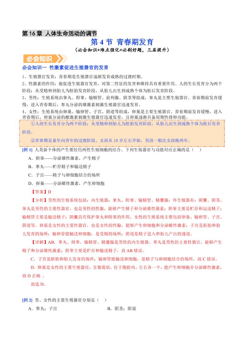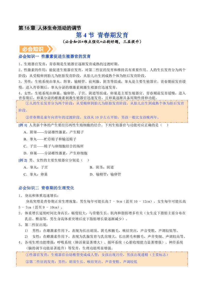 5.16.4 青春期发育(提升讲义)(原卷版)