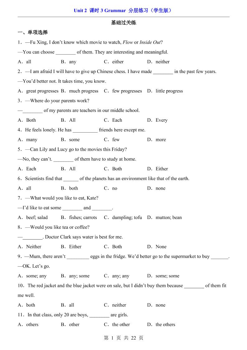 Unit 2 课时3 Grammar(分层练习)