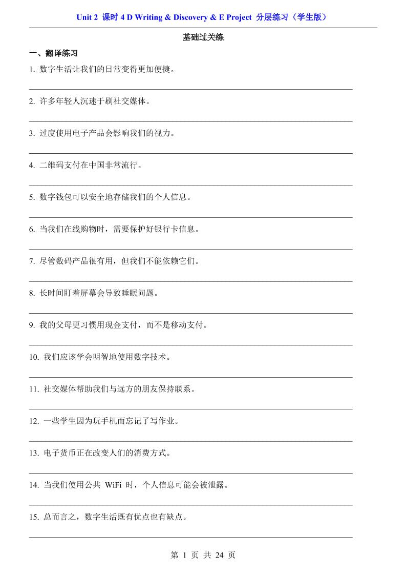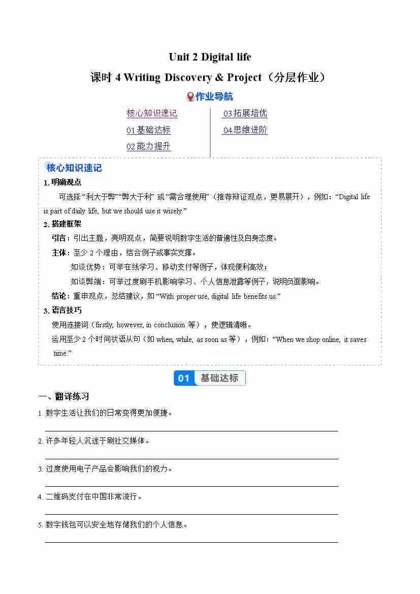 Unit 2 课时4 D Writing & Discovery & E Project(分层练习)