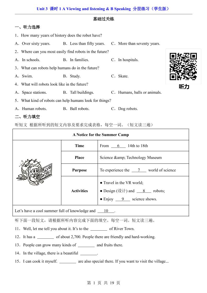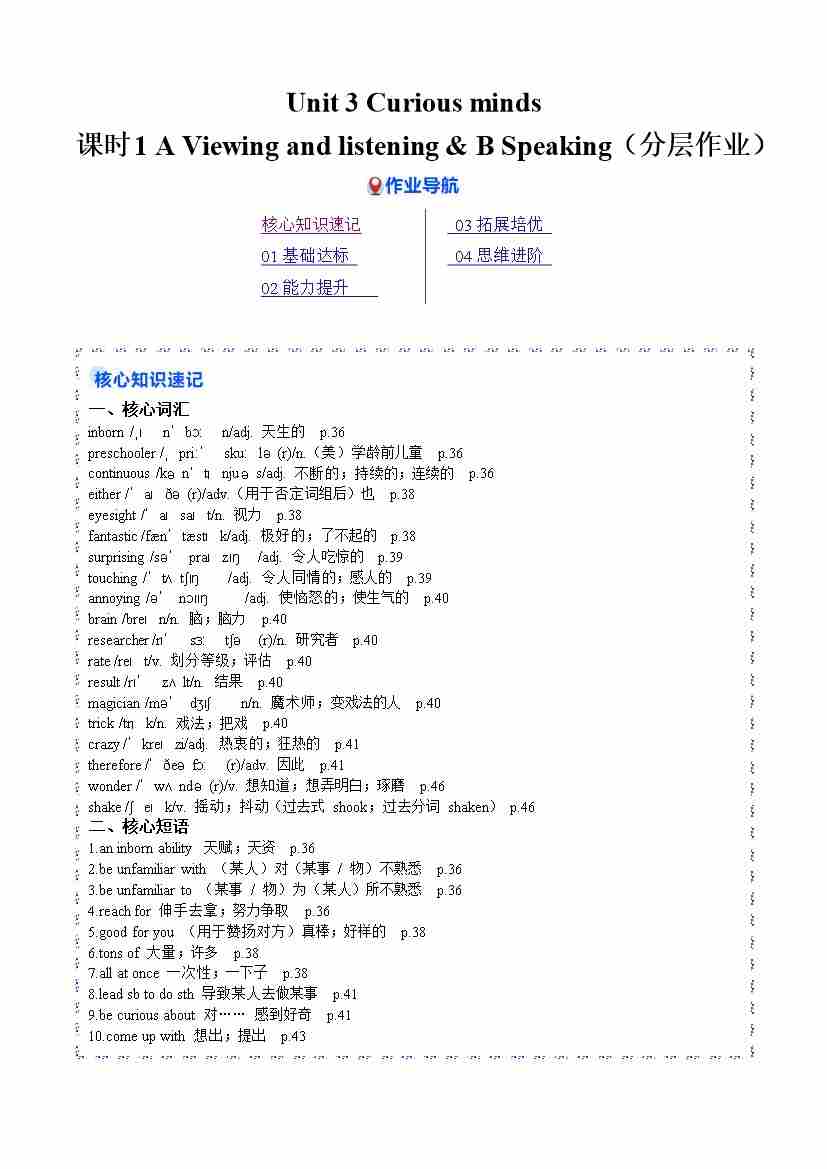 Unit 3 课时1 A Viewing and listening & B Speaking(分层练习)